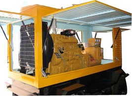 阿拉山口柴油发电机组/移动柴油发电机组设计独具创新,机动性高、重心低、制动安全、制造精良、外形美观。 阿拉山口拖车车架采用槽梁焊接成框架结构,节点选择合理、强度高、刚性好;同时装有钢板弹簧悬架结构;拖车采用高度可调节插销式牵引架,适用于各种高度牵引车;采用圆形钢管焊接直通式车轴,结构紧凑,安全可靠;车架四角设有机械式支撑装置,配备惯性行车制动、驻车制动和脱离应急制动,确保机组在各种状况下的安全;车架前端设有支撑轮,具备承受机组垂直载荷的功能的同时还具备导向功能;整车配备转向和刹车指示灯,同时装有尾灯标准插头